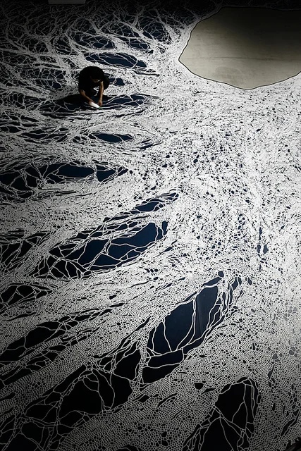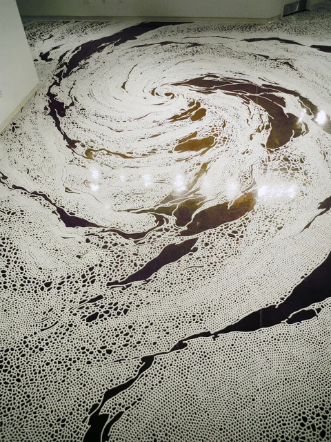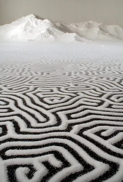 Using a simple household material, salt, as his primary medium, Japanese artist Motoi Yamamoto creates fantastical blizzards and seascapes that touch upon conceptual frontiers. Since Hi-Fructose correspondent Nathan Spoor interviewed Yamamoto in 2009, the artist has had several solo shows that yielded delicate, pristine works that are entrancing to look at with their repetitive and meticulous details. Many of Yamamoto’s works have a labyrinthine structure that the artist describes as “nearly reachable, yet not quite,” alluding to the idea of trying to recall past experiences and coming to terms with the fleeting nature of memory. Take a look at some of Yamamoto’s latest works from his shows at the Bellevue Arts Museum, Halsey Institute of Contemporary Art and the Hakone Open-Air Museum.